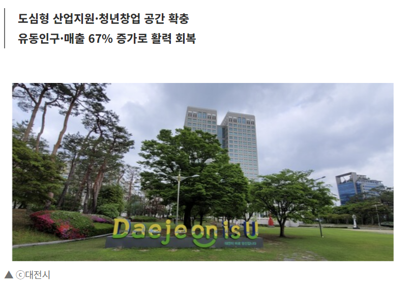 이장우 시장은 “이번 수상은 대전의 도시재생 정책이 전국적으로 인정받은 성과이다”며, “앞으로도 원도심 재생을 넘어 지역혁신과 산업성장을 선도하는 도시로 도약해 나가겠다”고 말했다.